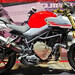 A nivel de parte ciclo viene bien cargadita. En suspensiones utiliza una horquilla delantera invertida firmada por Marzocchi, ajustable, un amortiguador de dirección y ABS de Bosch. En frenada, frenos Brembo M4.32 de primera calidad.