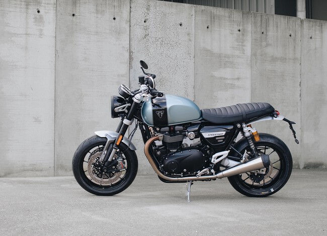 El equipo de frenos sigue apostando por un doble disco de 320 mm mordido por pinzas radiales monobloque Brembo M50 con cuatro pistones en el tren delantero mientras que en el tren trasero, utiliza un disco de 220 mm con pinza de doble pistón. No podían faltar tampoco las actualizaciones tecnológicas presentes en la última generación de la Speed Twin como la gestión electrónica de los modos de conducción (Sport, Road y Rain) o el control de tracción (desconectable). Otros elementos remarcables del modelo son la iluminación full LED con DRL, embrague asistido y anti-rebote, una toma de USB bajo el asiento, inmovilizador integrado en la llave o control de presión de los neumáticos.