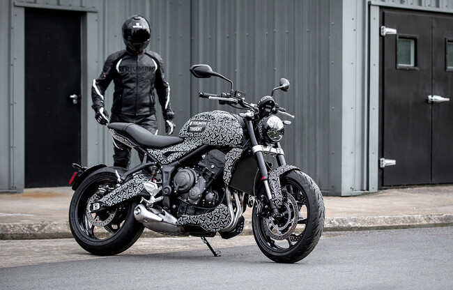 El motor, tal y como también se podía esperar, es el de tres cilindros en línea que conocemos de la Triumph Street Triple, seguramente el mismo que el utilizado por la versión 'S', que cubica 660 cc y rinde 95 CV. Por tanto, sería perfectamente limitable para el carnet A2 si se mantienen estas prestaciones finalmente.