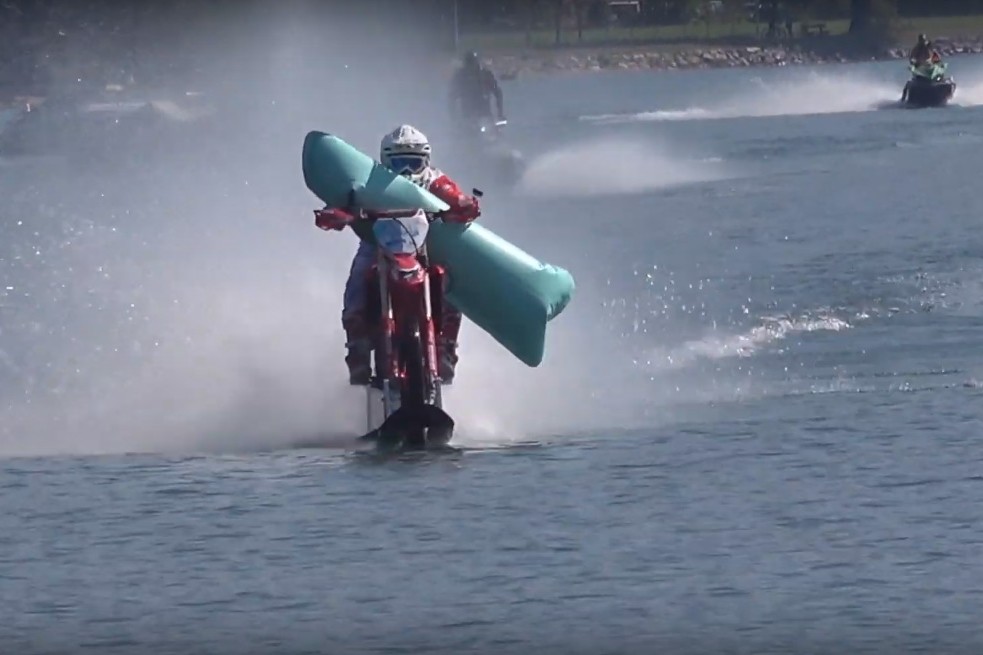 Y lo volvió a hacer. El piloto Luca Colombo consiguió batir un nuevo récord del mundo sobre el agua a lomos de su Honda CRF450L, una moto de cross preparada para flotar sobre el agua.