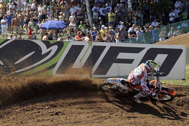 Porque muy de cara se le están poniendo las cosas al piloto de KTM para renovar su título mundial. Tardó en coger ritmo pero ahora que lo tiene y después de hacer algunas pequeñas mejoras en la moto austriaca, parece que ya no hay quien lo paré. Dejados atrás los problemas en la rodilla con los que empezó la temporada, Antonio Cairoli no falla carrera tras carrera y está siempre en los primeros puestos. Dos victorias, la primera más trabajada con Steven Frossard pisándole los talones.
