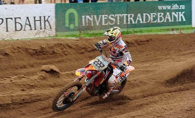 Antonio Cairoli llegaba a Lituania con muchas ganas de desquitarse del fiasco cometido en Uddevalla, así que salió con su actitud arrolladora queriendo no dejar títere con cabeza. Se marcó un holeshot espectacular y dejó fácilmente atrás a todos los demás rivales haciéndoles parecer domingueros. Simplemente tuvo que dosificar su ventaja y dejar que la KTM le llevase hasta la bandera de cuadros. Mientras tanto por detrás, su directo rival, Clement Dessalle no daba pie con bola y se caía en la salida, teniendo que remontar hasta el séptimo puesto, momento en el que volvía a caer y terminaba remontando de nuevo hasta la séptima plaza.
