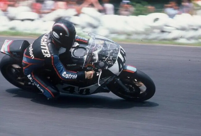 Su primer pinito fue en 1977, cuando debía correr la Daytona 100 con esa 750. Casualidades de la vida, la moto se rompió, y no pudo correr. Así que cambiaron de plan rápidamente: pasar a la categoría pequeña de 250 cc sin haber estado preparado para ella. Pues hizo podio por detrás de Steve Baker y Takazumi Katayama.
