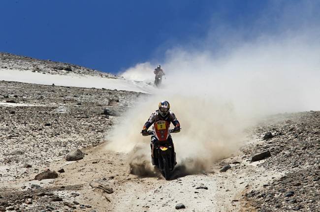 Hoy, duodécima etapa entre Arequipa y Nasca de 504 kilómetros con un tramo cronometrado para las motos de 245 kilómetros. Lo más destacado serán los más de 20 kilómetros ininterrumpidos de cordones de dunas, no de gran dificultad pero que sin pueden servir para aumentar un poco más la ventaja o recortar algún minuto precioso a tan solo tres días del final.