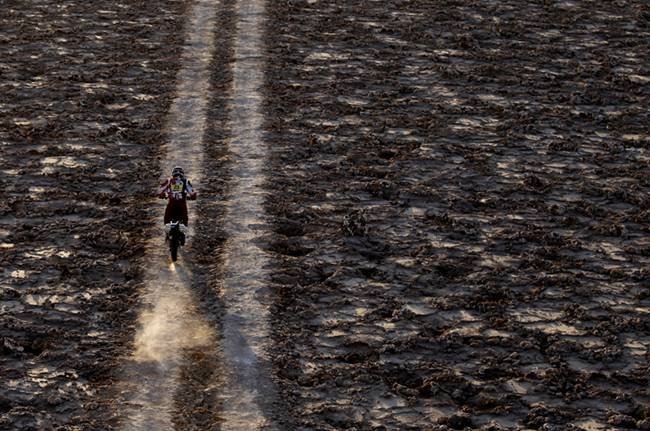 Me ha ido bien hasta el kilómetro 225, pues he podido mantener un buen ritmo. Sin embargo, llegado ese punto he cometido un pequeño error de navegación y Marc me ha adelantado. Coma avanzaba con Joan Barreda, a quien felicito desde aquí porque ha hecho una etapa espectacular. A estas alturas los segundos cuentan. Es la situación que me esperaba, sin sorpresas. Estoy contento de haber superado otra etapa. En cualquier caso, seguir por delante después de 377 km de pilotaje a tope no es fácil. Que yo termine en su polvareda o él en la mía no cambia gran cosa.
