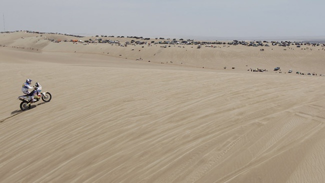 La etapa empezaba en Lima para y tras un enlace de 250 kilómetros, llegar a Pisco donde se celebraba la especial. Un bucle como decíamos en las arenas de la playa de Agua Dulce. Los primeros en completar el recorrido fueron los quads para, a continuación, tomar parte las motocicletas en orden inverso a sus dorsales.
