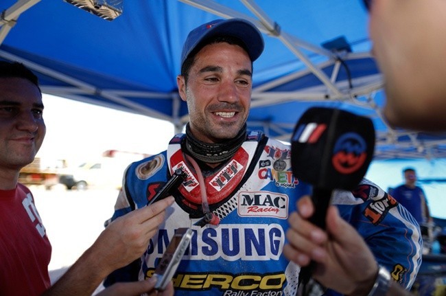 Ayer fue una gozada, de hecho fue una de las especiales más bonitas de mi carrera. Nuestra estrategia esta mañana era colocarnos a rueda de Michael Metge, que estaba en mejor forma. Las cosas se han desarrollado sin problemas hasta el km 170. Después he cometido bastantes errores de navegación, pequeños eso sí, aunque he conseguido, conjuntamente con Marc, minimizar el daño. Los últimos 150 kilómetros han sido una pelea entre él y yo. Sin embargo, a 9 km de la meta, se me ha roto el soporte del Iritrack y se han visto afectados varios cables eléctricos. Se me ha parado la moto así que me tenido que poner a repararla. Después de bastante trabajo mecánico he dado con el problema: un cortocircuito. ¿Que si estoy desanimado? Pues no, no lo estoy. Es la cuarta etapa de un total de 13. El día que tire la toalla será el día que deje de competir. Ha sido un enorme contratiempo, es cierto. Pero me encanta esta carrera y sé que aún no ha terminado para mí. Hoy podría haber abandonado pero sigo aquí. La moto funciona y yo estoy en plena forma.