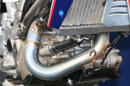Por último el chasis, fabricado con tubo de acero de alta resistencia, une de la manera mas recta posible la tija con el eje del basculante, colgando en su interior el motor, que gracias a su morfología no necesita de la habitual triangulación por delante. Esto permite que la moto sea aun más ligera por el ahorro de material que supone.