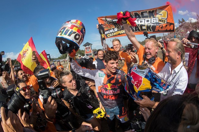 El joven gallego piloto oficial de KTM ha ganado 27 mangas de las 32 disputadas, incluyendo las dos de la cita inglesa en las que fue baja por lesión, y cosechando un total de 12 dobletes. Una trayectoria imparable cuyo único destino ha sido la segunda corona.
