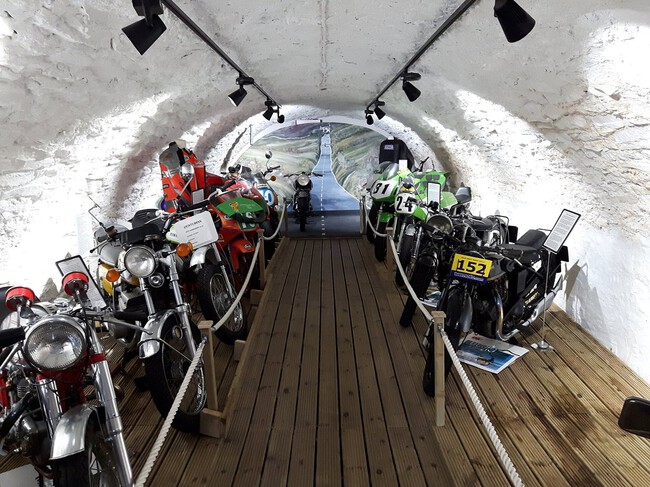 La planta inferior tiene aún más encanto, pues parece un túnel. En cada moto hay una descripción de la moto en cuestión, y de porqué es histórica. La colección se completa con todo tipo de monos y cascos de los gladiadores del TT.