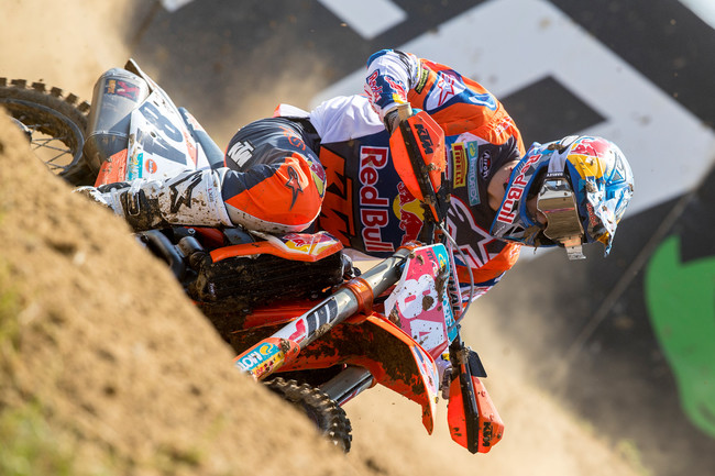 Para la segunda carrera del día fue Tony Cairoli quien se puso a comandar la prueba, perseguido por Gajser. A la salida de la primera curva Herlings ya se colocó en segunda posición y antes de completar el primer giro ya adelanto a su compañero de equipo aprovechando una pérdida de tracción en la KTM del italiano.