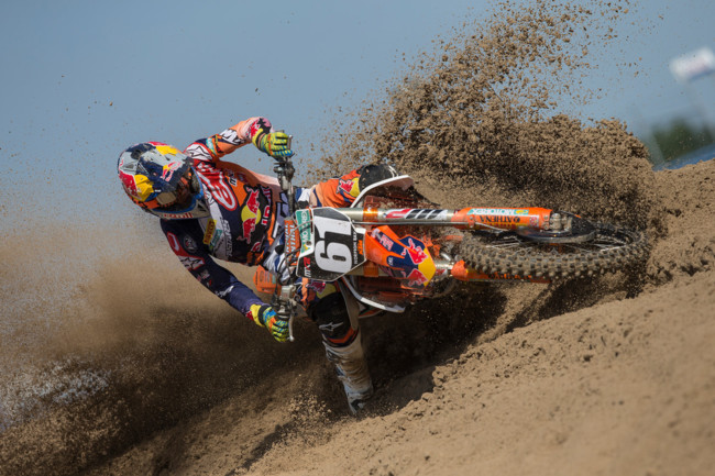 Con el terreno en mejores condiciones, el gallego fue a por todas. Se permitió incluso el lujo de discutirle el liderato a Herlings, y cuando el neerlandés se escapó, contuvo al también local Brian Bogers para entrar segundo, acabando tercero en la general del Gran Premio por detrás de Herlings y el propio Bogers.