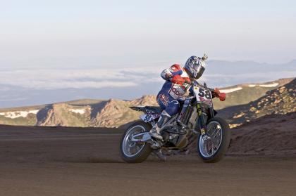 La subida a Pikes Peak es una ascensión por una carretera que combina zonas de asfalto y zonas de tierra, y se hace desde los 2.835 hasta los 4.300 metros. Un total de 156 curvas y otro tanto de rectas por las que la Aprilia SXV 5.5 pilotada por Davey Durelle pasó como un misil completando el recorrido en solo 11 minutos, 49 segundos y 9 décimas aventajando al segundo clasificado en 22 segundos. En la categoría de hasta 1.200 centímetros cúbicos el vencedor fue Greg Tracy con una Ducati Hypermotard. ¿Cuando supieron los americanos hacer motos para trazar curvas?