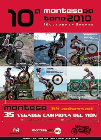 El próxima 12 de octubre se celebra la décima edición de la Montesada en Tona, un pueblo de la provincia de Barcelona en la comarca de Osona, en una zona de gran afición a la moto de trial. El año pasado me encontré con la Montesada por casualidad: estábamos de excursión con las MT's y el punto de encuentro era un bar tradicional de Tona, 4 carreteras. Había una concentración exagerada de motos de trial y me explicaron que era la Montesada.