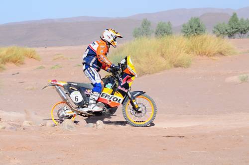 En la penúltima etapa del Rally de Marruecos hemos asistido a una bonita remontada por parte de Marc Coma y Jordi Viladoms, que han terminado primero y segundo respectivamente. En el caso de Marc, ha podido recortar la diferencia que tiene con el francés Cyril Despres en algo más de cuatro minutos.