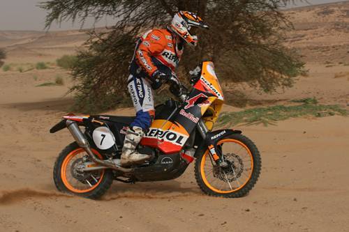 Marc Coma ha finalizado tercero, a algo más de cuatro minutos de su compañero de equipo, pero durante el recorrido ha conseguido dar caza a Cyril Després, por lo que los cuatro minutos que había perdido en la quinta etapa los ha podido recuperar, y sigue al frente de la clasificación con algo más de siete minutos de ventaja sobre el piloto francés.