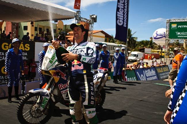 La etapa de hoy, entre Sobral y Fortaleza, de sólo 107 kilómetros cronometrados, discurrió tranquila. El español Marc Coma se limitó a administrar su ventaja y entraba en octava posición a casi cinco minutos de Felipe Zanol. El brasileño ha sido la revelación del Rally, en su primera participación en una prueba de este tipo. Zanol venció en cuatro etapas y fue capaz de imponerse a pilotos tan experimentados como el polaco Kuba Przygonski o el francés David Casteu.