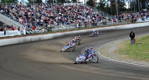 Según define la Wikipedia el Speedway son carreras que se disputan en un ovalo de tierra de 260 a 495 metros de longitud en sentido opuesto al giro de las manecillas del reloj. Si la pista es de de tierra, granito, arena, arcilla se denomina Dirt Track y si es de hierba se llama Grasstrack. Una competición de Speedway se disputa a 15 o 20 carreras de cuatro vueltas cada una con cuatro pilotos en la pista.