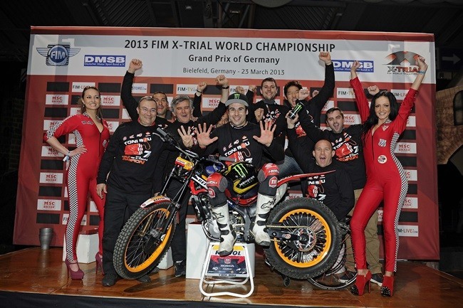 Toni Bou se ha vuelto a proclamar Campeón del Mundo de X-Trial 2013 o para los que ya tenemos unos años, Campeón del Mundo de Trial Indoor. Con este título, el de Montesa suma ya su séptimo título mundial consecutivo y la verdad es que viendo sus resultados prueba tras prueba, su tiranía va a seguir perdurando largo tiempo.