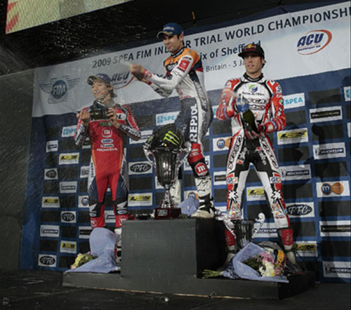 Los españoles Toni Bou, Adam Raga y Albert Cabestany se enfrentaban ayer a la primera prueba del año 2009, el trial indoor de Sheffield en Inglaterra, valedero para el Campeonato del Mundo. El piloto del equipo Repsol Montesa-HRC Toni Bou, actual campeón de esta modalidad, se ha impuesto en esta primera carrera, dejando claro que aspira a revalidar su título en 2009.