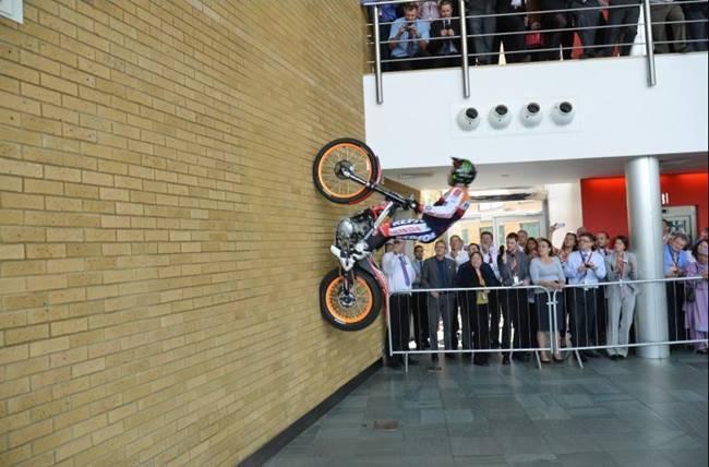 El ya doce veces Campeón del Mundo de Trial Toni Bou junto con su compañero en el equipo Repsol Montesa Honda, el japonés Takahisa Fujinami, visitaron la pasada semana el cuartel general de Honda en el Reino Unido y allí deleitaron a los trabajadores con una exhibición a la hora del almuerzo.