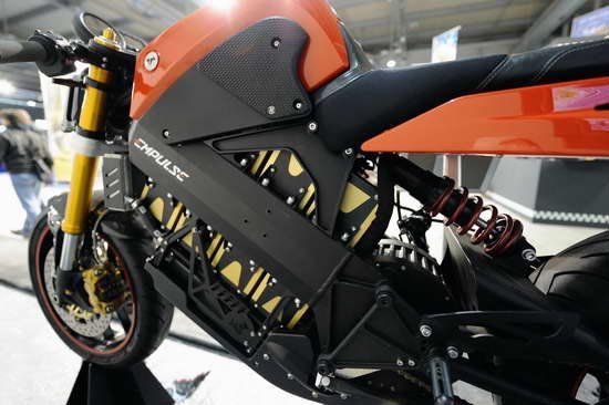 Lo que más destaca es el enorme volumen de las baterías, que ocupan todo el espacio que estaría destinado al motor y buena parte de lo que sería el depósito. Otra cosa que destaca es el cableado que conecta entre sí todas estas baterías. De un calibre que deja en ridículo la instalación de cualquier moto. Mirando atentamente las imágenes podemos ver también parte de la electrónica que controla toda la potencia disponible. La instalación lleva unos ventiladores como si fuera un ordenador para refrigerar algo los componentes. ¿Será que no conocen el Modding?