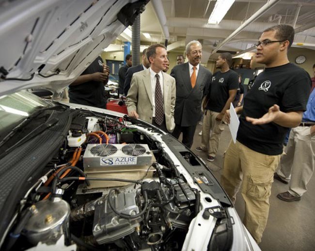 Vale que estamos en un blog centrado en el mundo de la moto. Pero creo que esta noticia de The Kneeslider merece la pena que le prestemos algo de atención. Resulta que en el instituto West Philadelphia High School de Philadelphia (USA) han fabricado un prototipo de coche híbrido para participar en una de esas competiciones en las que se premia a los coches que son capaces de conseguir consumos reducidos y/o autonomías kilométricas. ¿Y esto que tiene que ver con las motos?