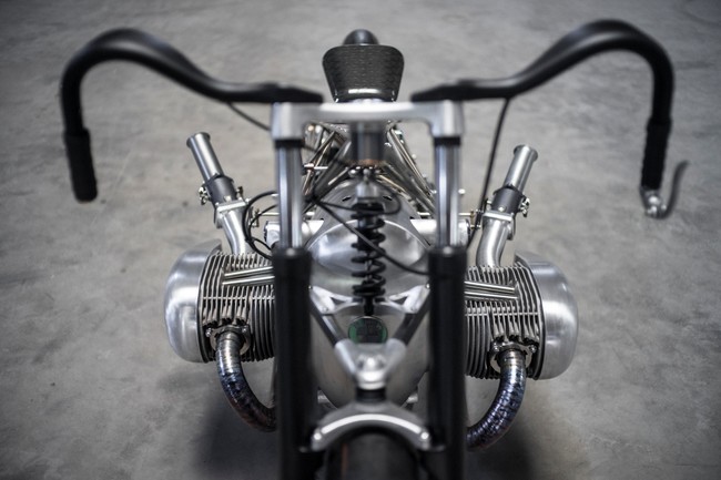 Primero vimos a este motor equiparse en la espectacular Custom Works Zon de Yuichi Yoshizawa y Yoshikazu Ueda. Hace sólo unos días el grotesco bóxer de aire y casi 2 litros de cilindrada se ha dejado ver de nuevo en el festival Handbuilt Show de Austin encastrado en la llamada Birdcage (jaula de pájaro) de Revival Cycles.