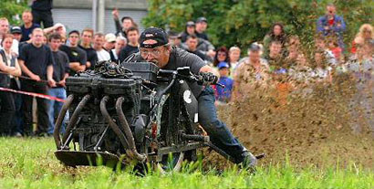 Seguro que habéis visto al campeón mundial de Freestyle haciendo cabriolas con una trialera sin la horquilla delantera, pero esto lo supera con creces. Resulta que hay una gente que se divierte haciendo carreras de aceleración con bichos de una sola rueda. Y no es exclusivo de Estados Unidos, en Europa también hay clubes que se dedican al tema.