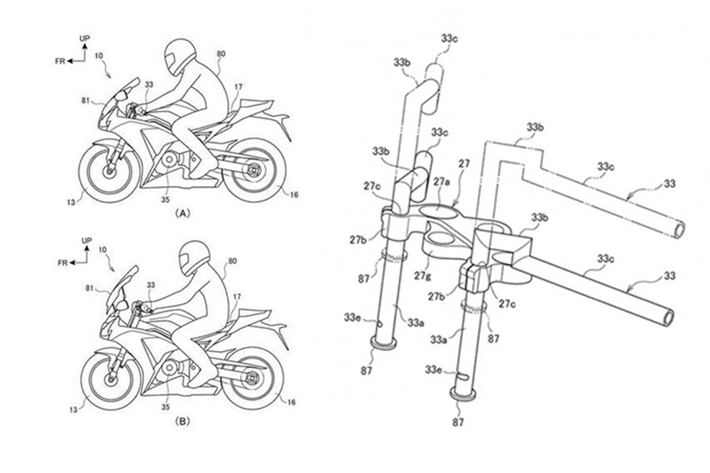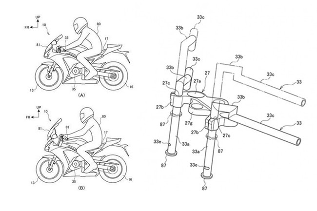 El manillar parte de la altura que podría tener una deportiva de Honda. Tiene unos tubos con los que se puede subir dicho manillar para que tenga una posición más cómoda. Para extenderlo hay que desenganchar un pasador de seguridad. Según la patente, con un solo botón y de forma automática se suben las dos barras.