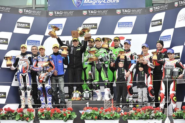 Porque cuando se dio la salida el sábado a las 15:00 horas había cinco equipos en el mismo segundo, todos con posibilidades de victoria. Pero esto es una carrera de 24 horas y pueden pasar muchas cosas en tanto tiempo. Estos cinco equipos, por orden eran el 1 del Suzuki Endurance Racing Team, 11 SRC Kawasaki, 94 Yamaha GMT94 Michelin, 99 BMW Motorrad France y 7 Monster Energy Yamaha. Hay que destacar que en el número 94 corría David Checa, el hermano del Campeón del Mundo de Superbikes. El sexto lugar de la parrilla lo ocupaba el primer equipo de Super Stock, con la Kawasaki del equipo Louit Moto 33. La representación española, además de David Checa la formaba el equipo Yamalube Folch Endurance. Creo que había algún otro piloto nacional, pero no he sido capaz de encontrar los datos con total seguridad en la web oficial del Bol d'Or.