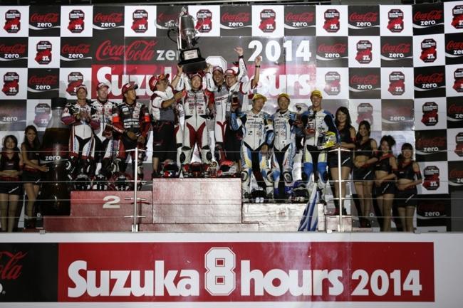 EL Yoshimura Suzuki fue segundo con Takuya Tsuda, Randy De Puniet y Josh Waters a menos de un minuto del vencedor mientras que el Team Kagayama de Yukio Kagayama, Noriyuki Haga y Dominique Aegerter completaban el podio con una vuelta perdida. Después de tantas horas, unas distancias mínimas entre los primeros.