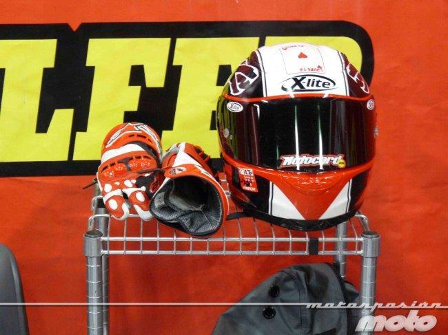 Y nada, cuando termina el masaje, otra vez a enfundarse el mono, las botas, el térmico, la espaldera, los guantes y el casco para estar preparado media horita antes dentro del box. La espera se hace larga, aunque cada vez menos debido al cansancio, pero cuando llega la moto al box y le hacen la "pedicura" y le "dan de beber" tú ya estás motivado, concentrado y dispuesto a darlo todo. Sales a pista, sin rebasar el límite de velocidad permitido dentro del carril de boxes, encarando el final de recta en bajada del Circuit de Catalunya y tomas las curvas como si fueran el patio de tu casa. Ya llevas todo el fin de semana ahí y un montón de tandas a tus espaldas. Vueltas y más vueltas te permiten salir a pista con total confianza, sabiendo todos los puntos de referencia y conociendo todas las reacciones posibles de la moto. La clave del pilotaje está en estar concentrado únicamente en lo que estás haciendo. Ni las luces de noche, ni los pilotos que te pasan ni los fotógrafos que hacen fotos. Únicamente tú, la moto y la pista. Solo así se consigue rodar constante y seguido.