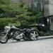 Todo está hecho a medida. Las enormes llantas traseras van a juego con las del remolque, un remolque que se une a la moto a través de un enganche especial situado en la parte superior trasera y que obliga a realizar una carrocería con guardabarros específicos para la moto, además de una suspensión reforzada y una pareja de escapes saliendo por el centro. El asiento original se ha sustituido por uno monoplaza.