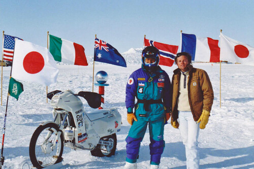 Tras haber llegado el Polo Norte en moto, cinco años más tarde viaja hasta el Polo Sur.