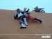 Es todo una arte el moverte con soltura en este terreno, así aprendimos enseguida que por donde hay huellas de camello ese es el mejor terreno para rodar, ya que por allí casi no te hundes en la arena. También hay que estar muy hábil para coronar la duna con el impulso suficiente para no quedarte corto y tener que dar la vuelta. No intentes subir una vez parado, aunque te falte menos de un metro, por que lo único que puedes conseguir es que la rueda trasera se hunda hasta el basculante. O peor todavía es cuando te has pasado en el cálculo y sales volando hacia el otro lado de la duna. ¿Verdad Jerome?