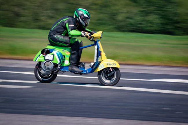 Este hombre ha hecho historia al alcanzar 205 km/h con una Vespa modificada, batiendo ocho récords mundiales de velocidad