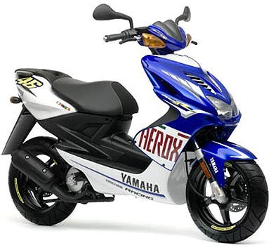 El último diseño de Yamaha Aerox Race Replica es la scooter con el diseño gráfico de la M1 que Valentino Rossi pilota en el Mundial de MotoGP 2007 con el equipo Fiat Yamaha, en donde por supuesto no falta el número 46.