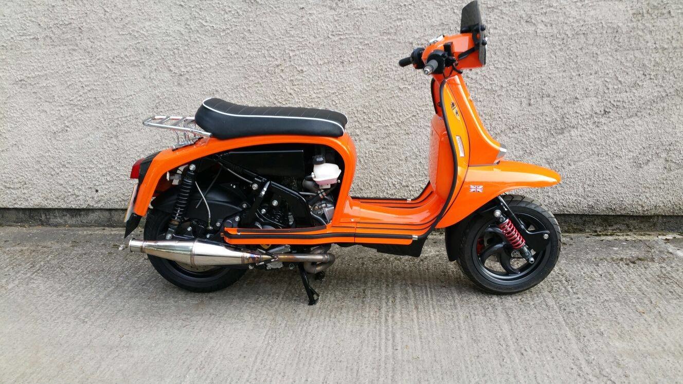 Creo que más o menos ya sabes a donde quiero llegar y la marca de scooters británicos Scomadi nos va hacer más llevadero nuestro problema de compatibilizar clasicismo y fiabilidad. Esta asociación de dos conocidos preparadores de scooters como son Frank Sanderson de Scooter Innovation y Paul Melici de PM Tuning ya ofrece motos de estilo clásico construidos en China, pero con unas características técnicas más inferiores.