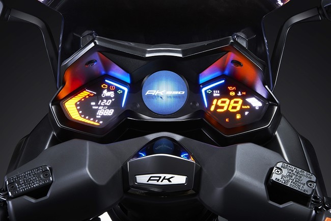 El AK 550 no sólo sigue la receta utilizada en su némesis japonés, sino que además quiere ir un paso más lejos para ofrecer el primer scooter inteligente del mercado. Entre las dos esferas digitales de su panel de mandos, la pantalla circular configurable nos mostrará multitud de opciones y añadidos digitales totalmente conectados con las preferencias del usuario y su teléfono móvil.