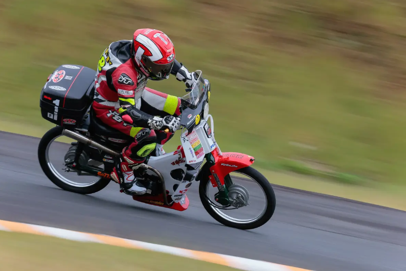 El 9 de junio disputaron la primera carrera en el mítico Fuji Speedway. En 'Campeón del Box' solo hay un requisito: correr con scooters que parezcan motos de trabajo cargadas con cajas, y que sean de fabricación japonesa pura. Por ejemplo, la mítica Honda Super Cub.