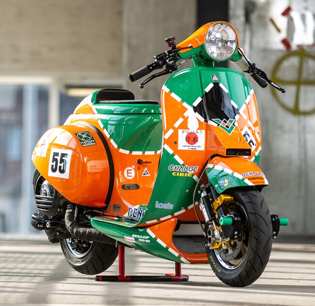 Décadas después, esa victoria ha acabado convertida en scooter. No en un guiño superficial, sino en una Vespa PX llevada al extremo para rendir tributo, de verdad, a aquel prototipo de Grupo C.