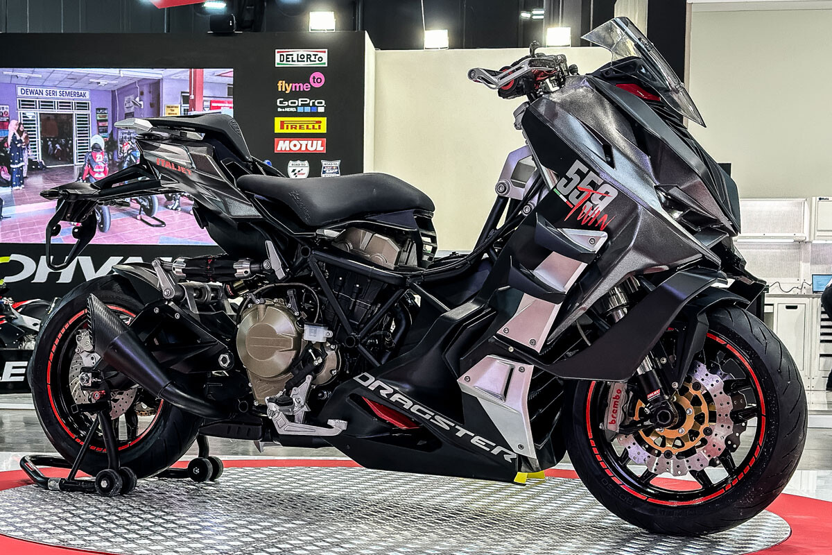 El corazón mecánico de este invento es un bicilíndrico de refrigeración líquida, con doble árbol de levas en cabeza y distribución de cuatro válvulas que genera 58,33 VV a 8.500 vueltas, y un par motor de 55 Nm a 6.500 rpm.