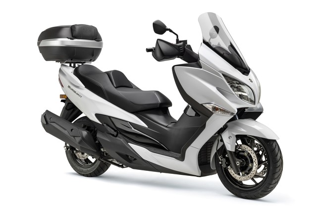 Suzuki se ha dado cuenta de las necesidades que piden sus usuarios. Sus modelos previos de Burgman se caracterizaban por tener cofres casi esféricos o alargados en los que cabían dos cascos integrales e incluso algo más, casi parecían el bolso de Mary Poppins.