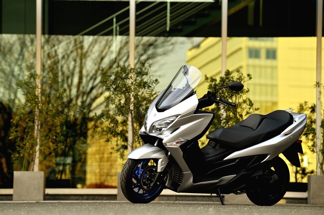 Lo cierto es que aunque la marca nos lo venda como un restyling repleto de cambios, lo cierto es que el Burgman 400 por fuera es exactamente el mismo modelo. Lo único que cambia por fuera en esta nueva generación es la adopción de nuevas decoraciones con una combinación de Metallic Mat Sword Silver con llantas azules y costuras del asiento a juego. A esta decoración se unen las Solid Iron Gray y Metallic Mat Black.