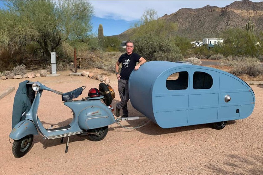 Nuestro protagonista de hoy es Thomas Burick, un hombre que ama tanto a las Vespa como las caravanas. Así que de ese amor ha nacido un invento que roza lo bizarro, y por el que en España tendría que pasar por unas cuantas manos antes de homologarse. Sin embargo, él ya la utiliza en Estados Unidos como complemento a sus fines de semana.