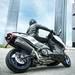 Lo que más llama la atención es la nueva cola de escape Akrapovic, siempre indispensable en un alto porcentaje de los más de 230.000 TMax vendidos en todo el mundo desde su aparición en el año 2001. Este nuevo silenciador acabado en negro mate con remates en fibra de carbono rebaja el peso del sistema de serie y realza el carácter del motor bicilíndrico japonés, además de ofrecer un sonido más contundente.