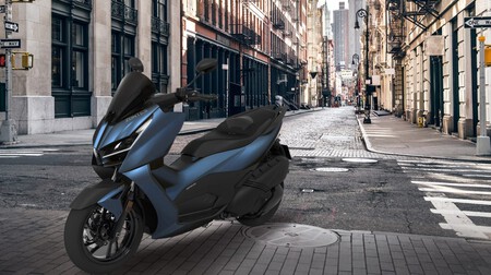 Justo encima del faro delantero está el parabrisas, recortado, en tono ahumado y regulable en altura en un rango de 170 mm a través de las piñas. En el diseño está la practicidad: dos guanteras, una de ellas con toma USB QC 3.0 y 18W, además del compartimento principal bajo el asiento que da cabida a un casco integral.