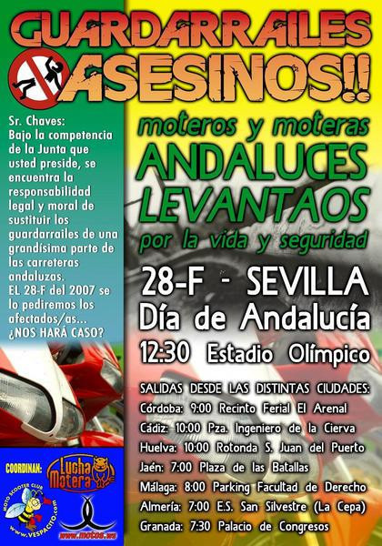 Será en Sevilla, el 28 de febrero en el aparcamiento del Estadio Olímpico, a las 12:30 del mediodía. Una vez más, se hace un llamamiento a todas aquéllas personas que consideren que los gusardarrailes que están montados en nuestras carreteras son un peligro y que deban ser sustituidos por soluciones menos agresivas.
