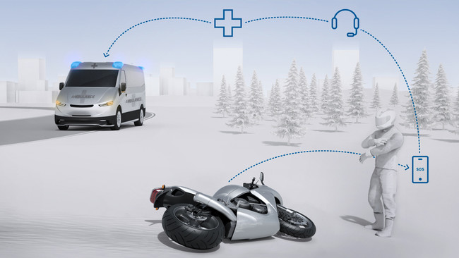 Con el servicio Help Connect de la compañía alemana se nos presenta una tecnología inteligente que envía a un smartphone los datos recogidos por un sensor de inercia que se integra en la centralita ECU de la moto y que es capaz de detectar la aceleración, la posición y el ángulo de inclinación de la misma.